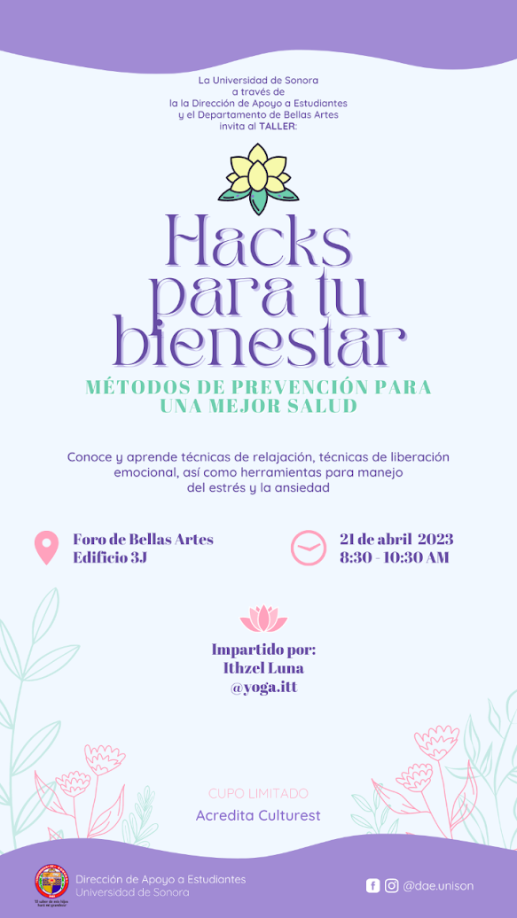 Hacks para tu bienestar. Asiste al Taller sobre métodos de prevención para una mejor salud.